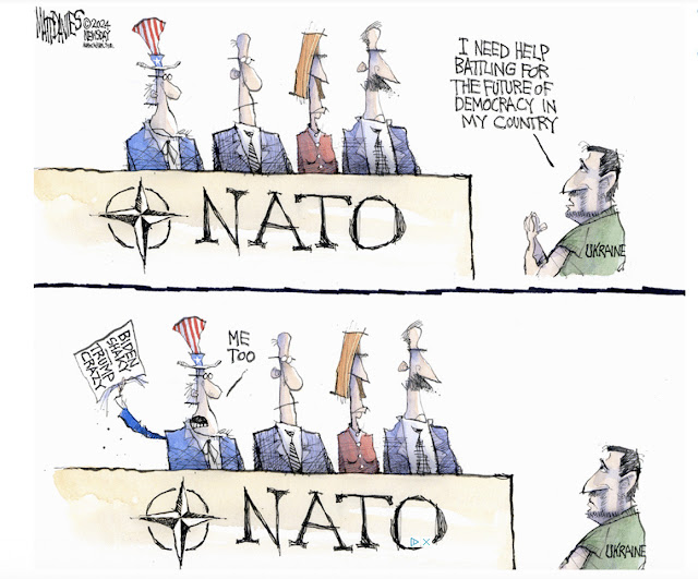 His press conference after NATO was pretty good. He illustrated again that he is a master at foreign policy, and he was able to speak deftly about it. That isn't to say that he didn't have gaffes. Shortly before the presser, at the end of the NATO conference, he had introduced Ukraine's President Zelenskyy as "President Putin," and in the opening moments of the press questions, he referred to Kamala Harris, his own V.P., as "Vice President Trump." Yikes.